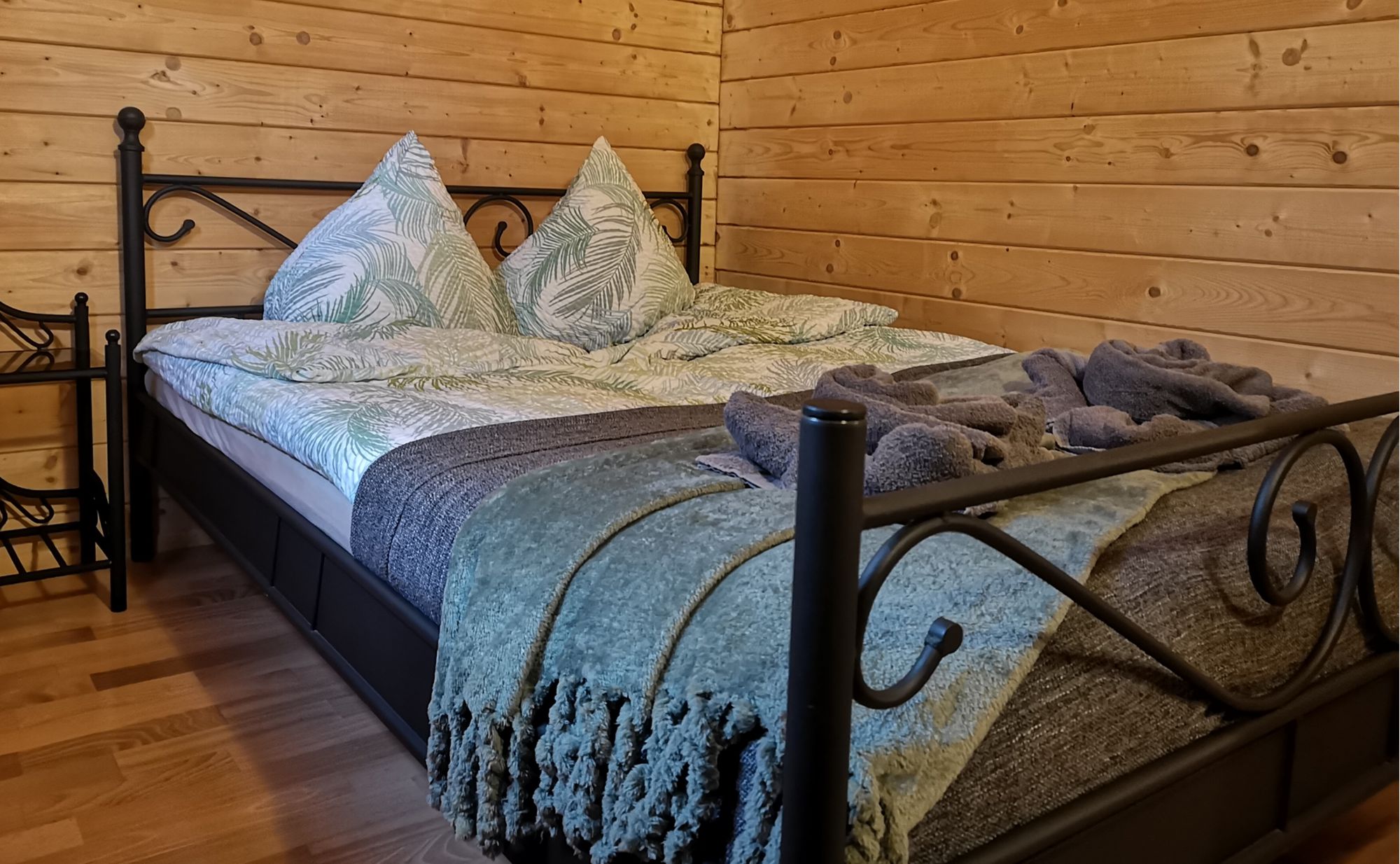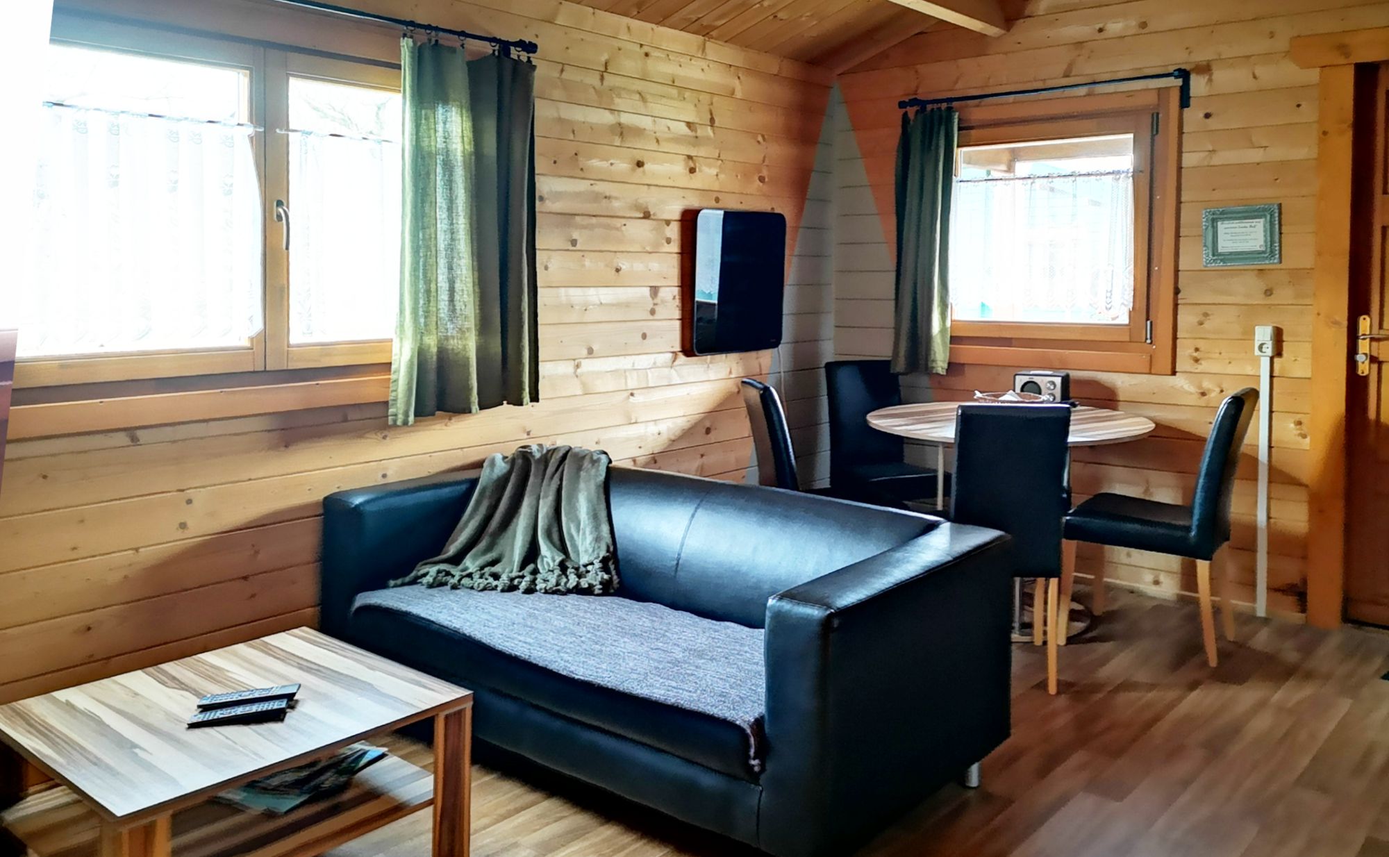 Die rund 40 m² fühlen sich sofort warm und vertraut an – perfekt für kleine Familien oder Freunde, die eine entspannte Auszeit im Lausitzer Seenland genießen wollen.